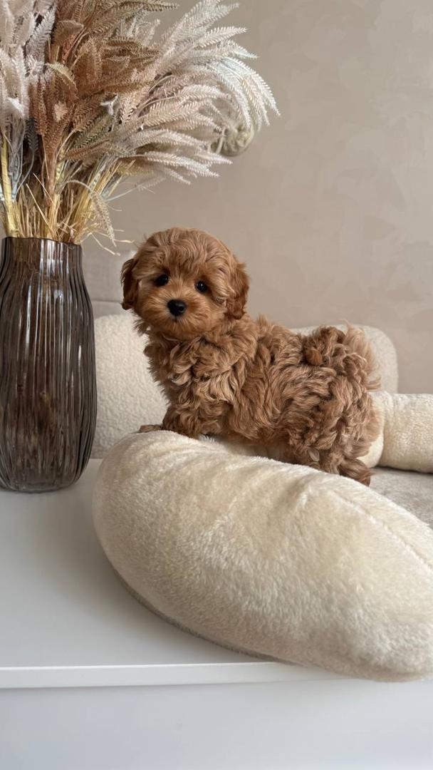 With their charming apricot-colored coats, these puppies are not only beautiful but also incredibly friendly and easy to train. Their small size makes them suitable for both apartments and larger homes, and they fit perfectly into any lifestyle. If you’re looking for a dog that loves to please and is great with kids, the Apricot Maltipoo is the ideal choice.